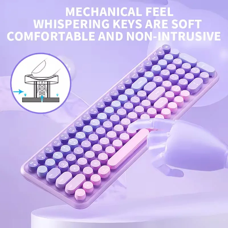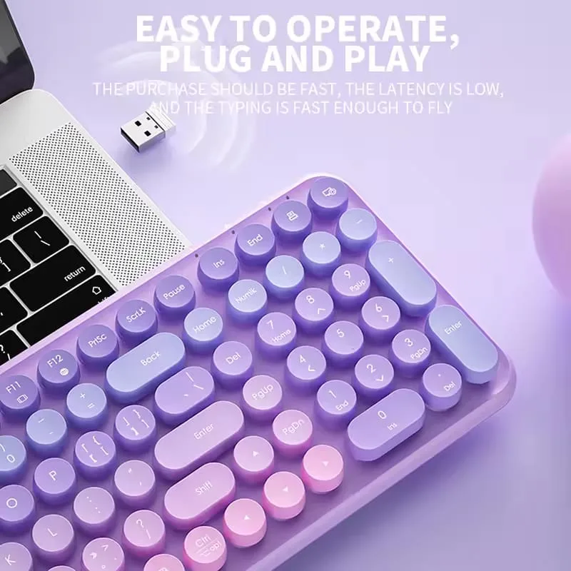 Colorful 2.4G Keyboard: Wireless keyboard with retro typewriter-style round keycaps makes typing more comfortable. The latest gradient rainbow purple color, the special colors attract more people’s eyes, giving you a different visual enjoyment and a good mood